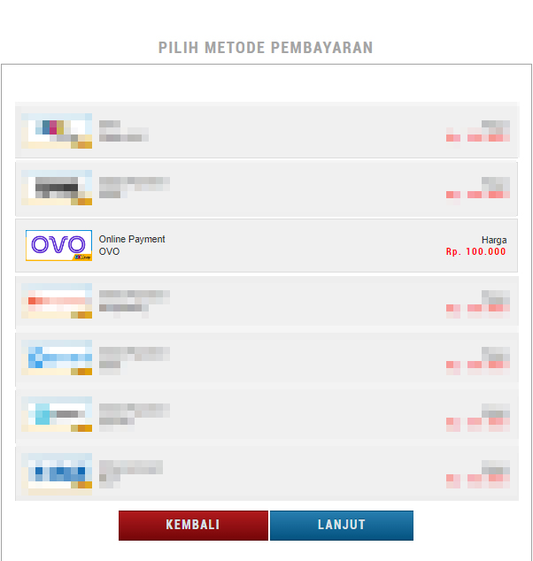 | 5. Kamu akan diarahkan kehalaman pemilihan pembayaran, pilih OVO untuk dijadikan metode pembayaran. |